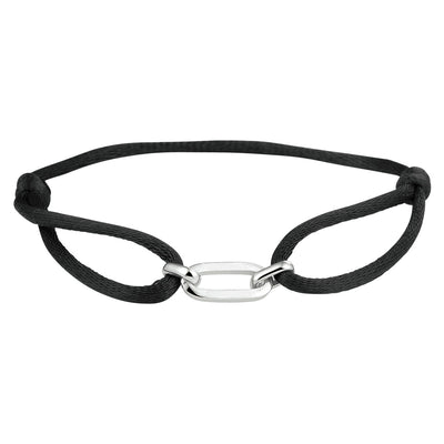 Basis | Zwart gevlochten armband uitgevoerd met gerhodineerd 925 zilveren schakels met een breedte 5mm