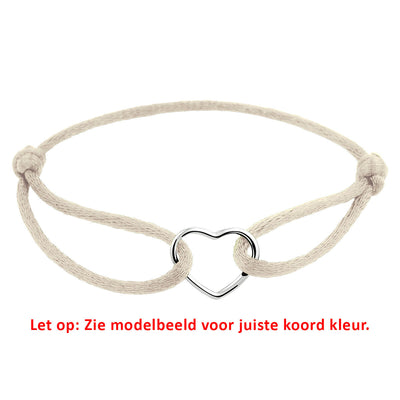 Basis | Ivoor gevlochten armband uitgevoerd met een gerhodineerd 925 zilveren hartje