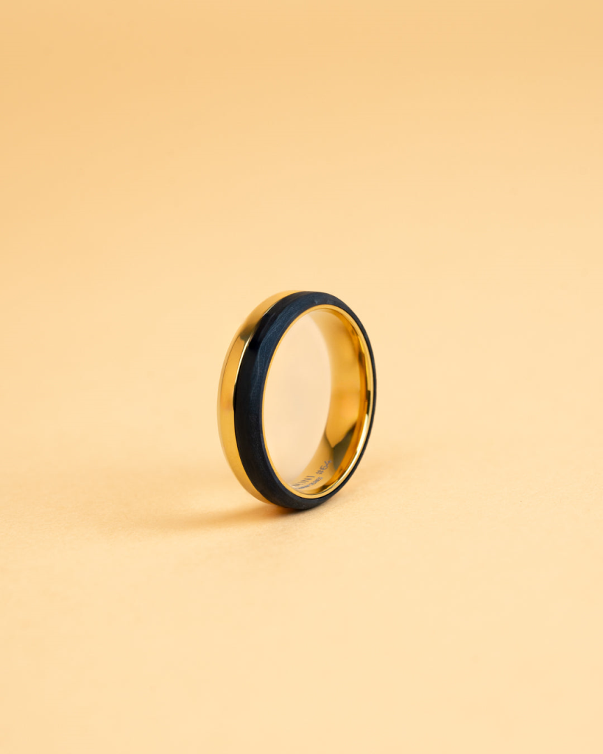 De zwarte en gouden tinten van deze ring passen prachtig bij elkaar, wat zorgt voor een elegante en verfijnde uitstraling. De comfort fit aan de binnenkant maakt deze ring uiterst aangenaam om te dragen, zelfs bij langdurig gebruik. Met een breedte van 6 mm heeft de ring een stoere, maar toch stijlvolle uitstraling die perfect in elke gelegenheid past.