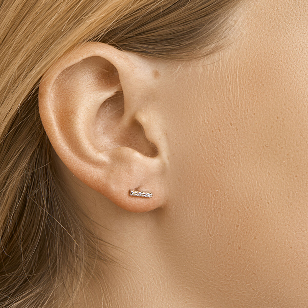 Deze stijlvolle gerhodineerde zilveren oorknoppen hebben een minimalistisch ontwerp met een klein balkje en een sprankelende zirkonia. De oorknoppen hebben een hoogte van 8 mm en een breedte van 1.7 mm. De transparante zirkonia voegt een vleugje glamour toe aan het subtiele ontwerp, wat ze perfect maakt voor dagelijks gebruik of speciale gelegenheden.