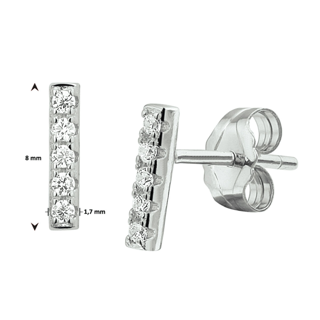 Gerhodineerd zilveren oorknoppen met balkje en zirkonia