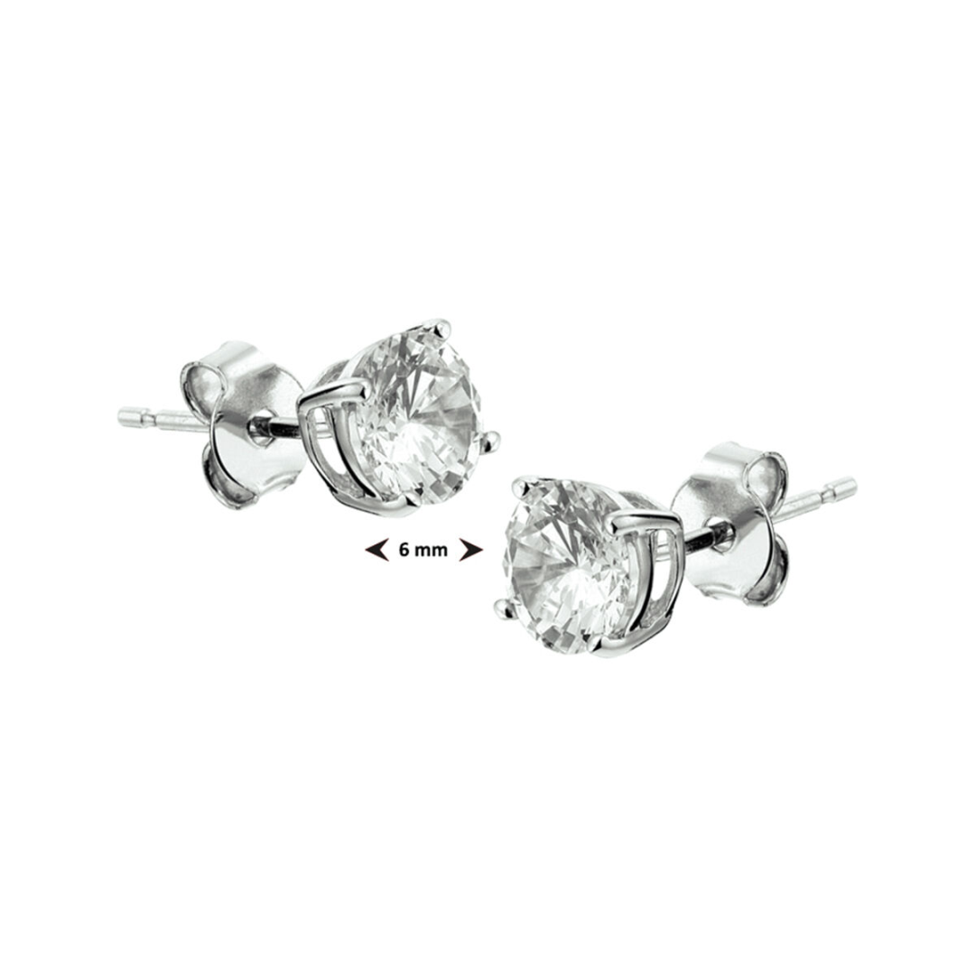 Deze verfijnde oorknoppen zijn vervaardigd van gerhodineerd zilver en versierd met een transparante zirkonia van 6 mm in diameter. De gepolijste afwerking zorgt voor een elegante uitstraling, ideaal voor zowel dagelijks gebruik als speciale gelegenheden.
