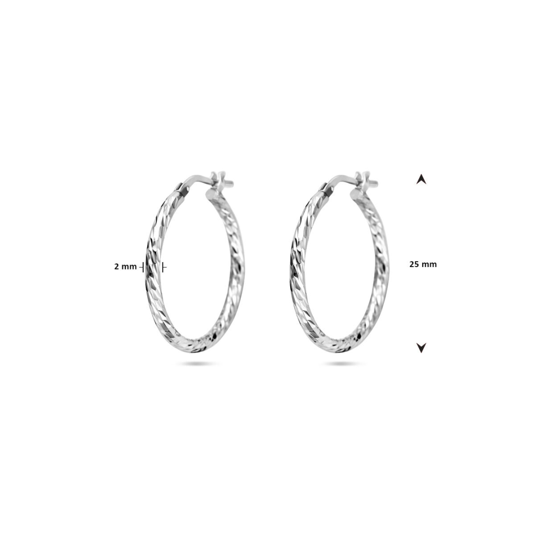 Deze elegante zilveren oorringen van House of SIS hebben een gediamanteerd oppervlak dat zorgt voor een subtiele schittering. Met een diameter van 20 mm en een gerhodineerde afwerking, bieden ze een moderne look en langdurige bescherming tegen verkleuring. Perfect voor zowel alledaagse als feestelijke gelegenheden.