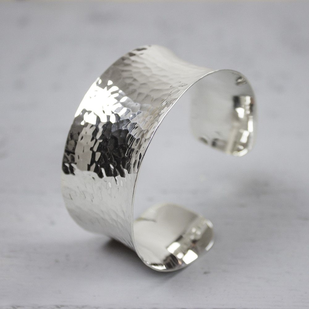 Jéh Jewels | Zilveren gepolijste klemarmband met hamerslag structuur