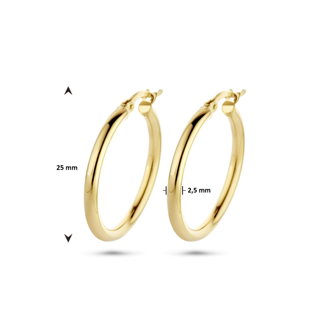 Geelgouden oorringen met een ronde buis en een hefboom-sluiting.