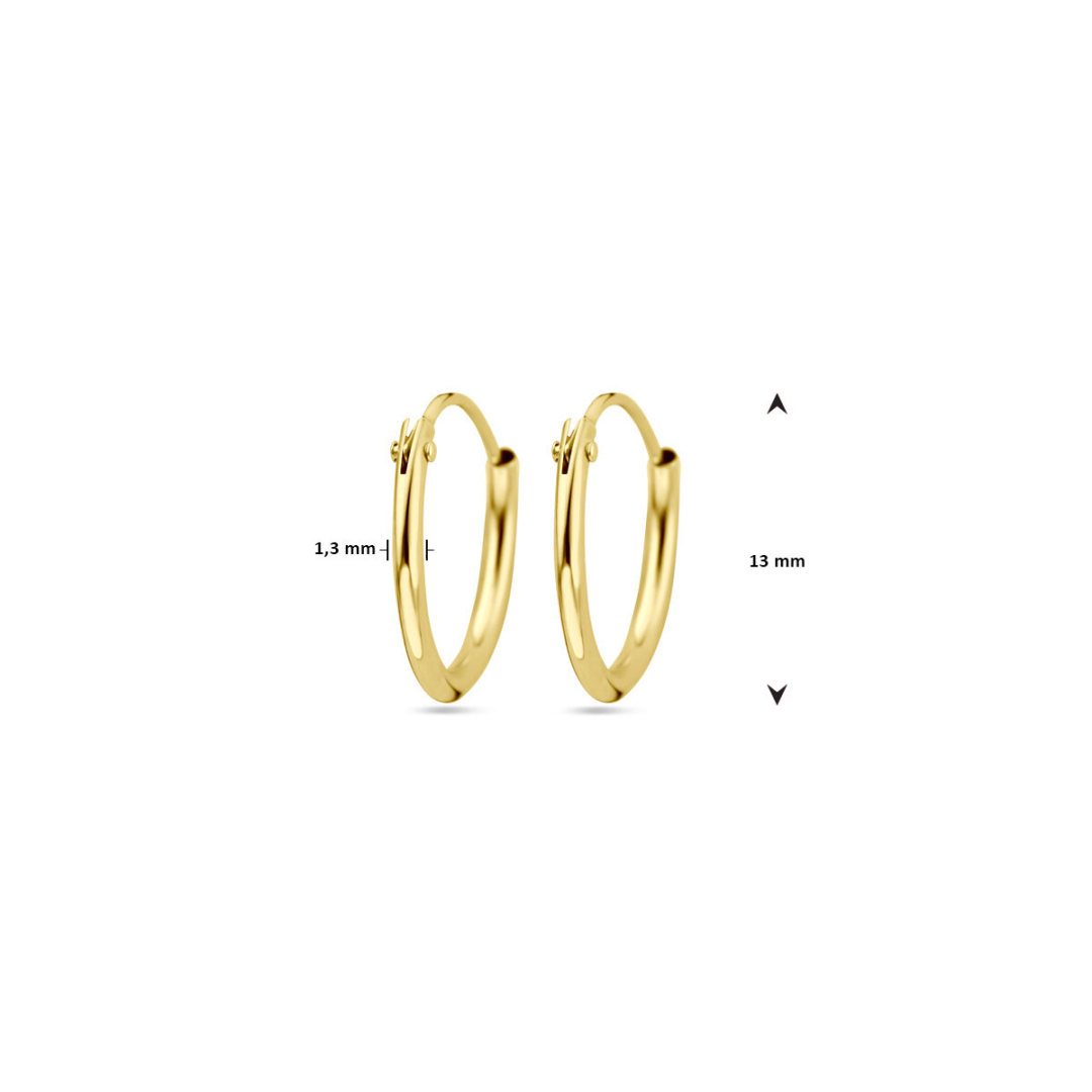 Geelgouden oorringen met een ronde buis en een scharnier-sluiting.