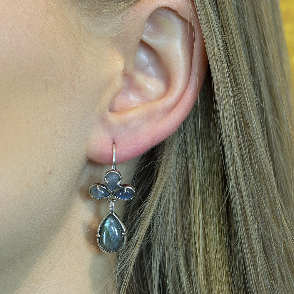 Jéh Jewels | Zilveren oorhangers met druppelvormige labradoriet