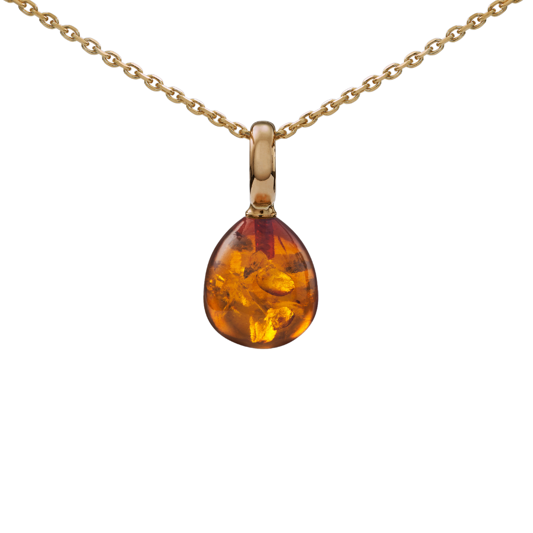Snoepjes | 14 karaat geelgouden hanger met barnsteen | Druppelvormig 12 x 10 mm | Met groot oog - 2722