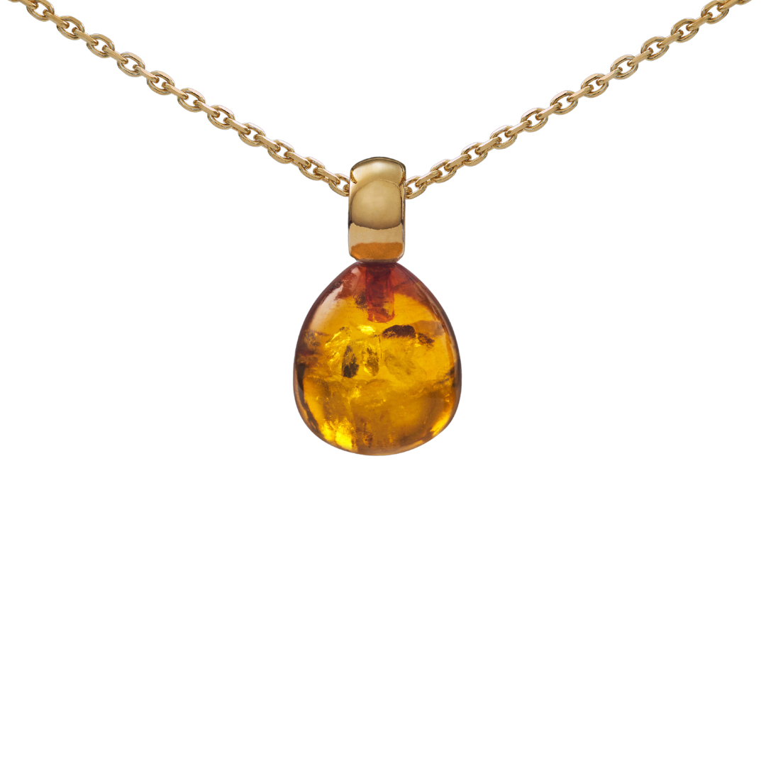Snoepjes | 14 karaat geelgouden hanger met barnsteen | Druppelvormig 12 x 10 mm | Met klein oog - 2723