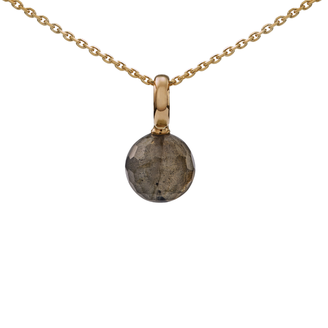 Deze verfijnde Snoepjes hanger in 14 karaat geelgoud straalt warmte en luxe uit, perfect voor wie houdt van een tijdloze en klassieke uitstraling. De hanger is voorzien van een bolvormige labradoriet van 10 mm, die met zijn betoverende blauwgrijze schittering een unieke en mysterieuze charme toevoegt. Het glanzende geelgouden frame versterkt de warme tonen van het ontwerp en laat de natuurlijke kleurschakeringen van de labradoriet prachtig naar voren komen. Het grote oog maakt het gemakkelijk om de hanger aan een ketting te bevestigen en biedt een elegante en opvallende uitstraling.
