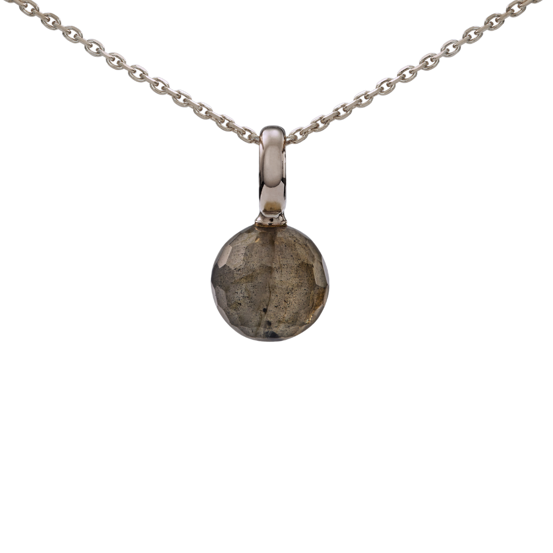 Deze verfijnde Snoepjes hanger in 14 karaat witgoud straalt moderne elegantie en tijdloze luxe uit, perfect voor wie houdt van een unieke en stijlvolle uitstraling. De hanger is voorzien van een bolvormige labradoriet van 10 mm, die met zijn mysterieuze blauwgrijze schittering een betoverende en fascinerende charme toevoegt. Het glanzende witgouden frame omlijst de steen op een prachtige manier, waardoor de natuurlijke glans en kleurschakeringen van de labradoriet volledig tot hun recht komen. Het grote oog maakt het gemakkelijk om de hanger aan een ketting te bevestigen en geeft het geheel een elegante en opvallende uitstraling.