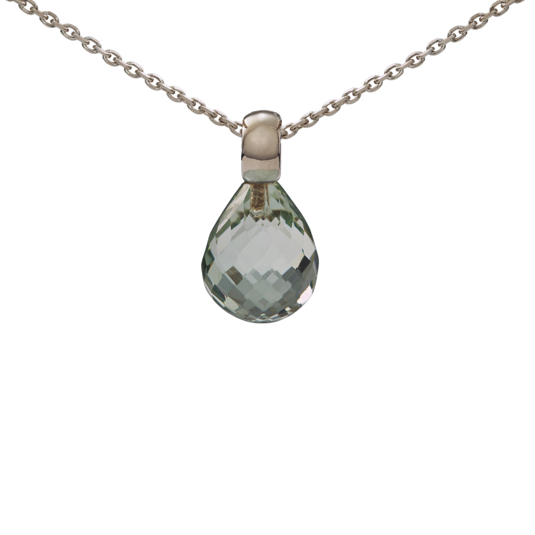 Snoepjes | 14 karaat witgouden hanger met prasioliet | Druppelvormig 12 x 10 mm | Met klein oog - 2765