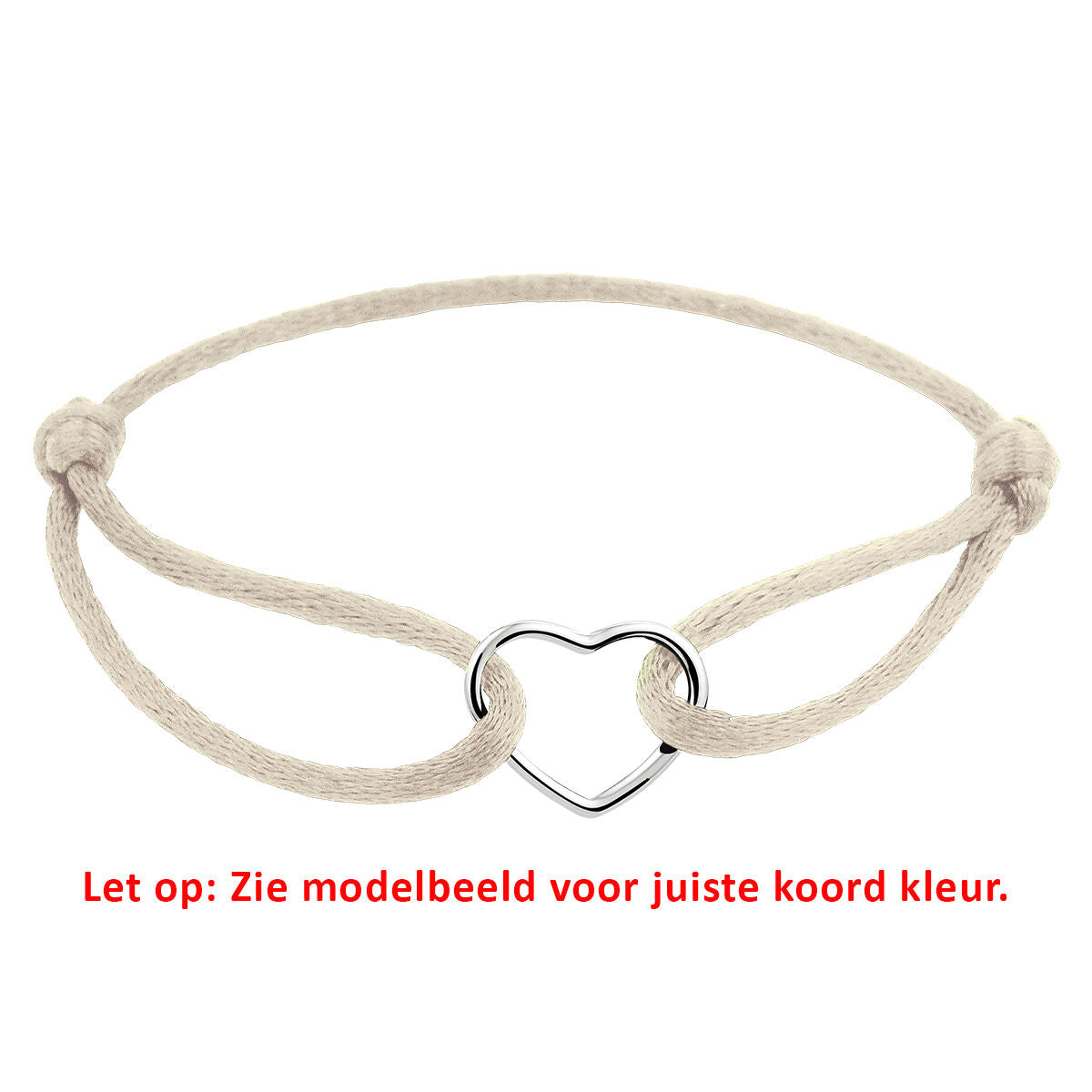Ivoor gevlochten armband uitgevoerd met een gerhodineerd 925 zilveren hartje. De armband heeft draaglengtes van 13 tot 26cm. Het hartje heeft een afmeting van 12.5x15.5mm.