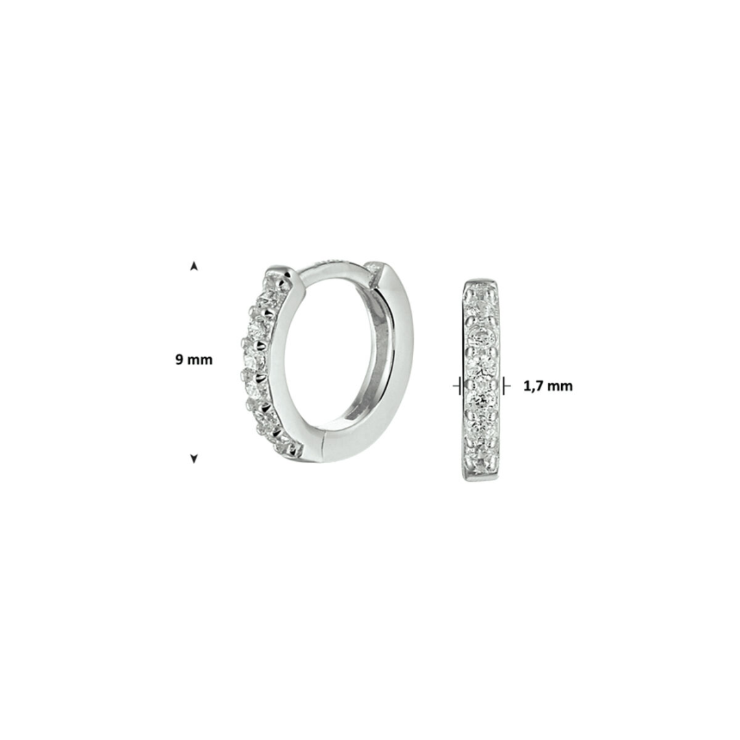 Gerhodineerd 925 zilveren oorringen met scharnier uitgevoerd met een heldere zirkonia rij. De oorringen hebben een diameter van 9mm.
